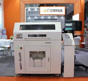 圖:三帝科技現(xiàn)場(chǎng)展示BJ粘結(jié)劑噴射金屬打印機(jī)3DPTEK-J160R